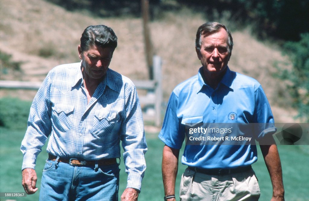 President Reagan spends the day clearing brush along the trails at Rancho del Cielo in California.
