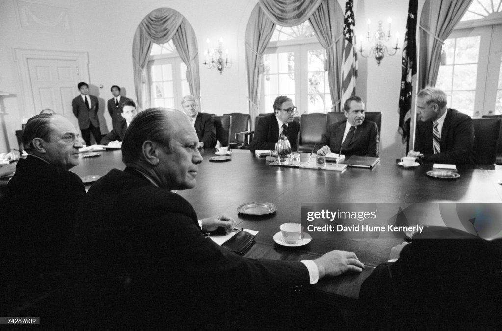 Vice President Ford told the New York Times that he felt prepared to assume the presidency but had made no “transition plans.” In an interview, he gave the impression of being fully aware he is on threshold but uncertain when he will cross it. He declined to say if transition was discussed in his hour-long meeting with Mr. Nixon’s chief aide, General Alexander Haig. It would be “premature,” he said, to discuss whether he would pick former Gov. Nelson Rockefeller as Vice President.