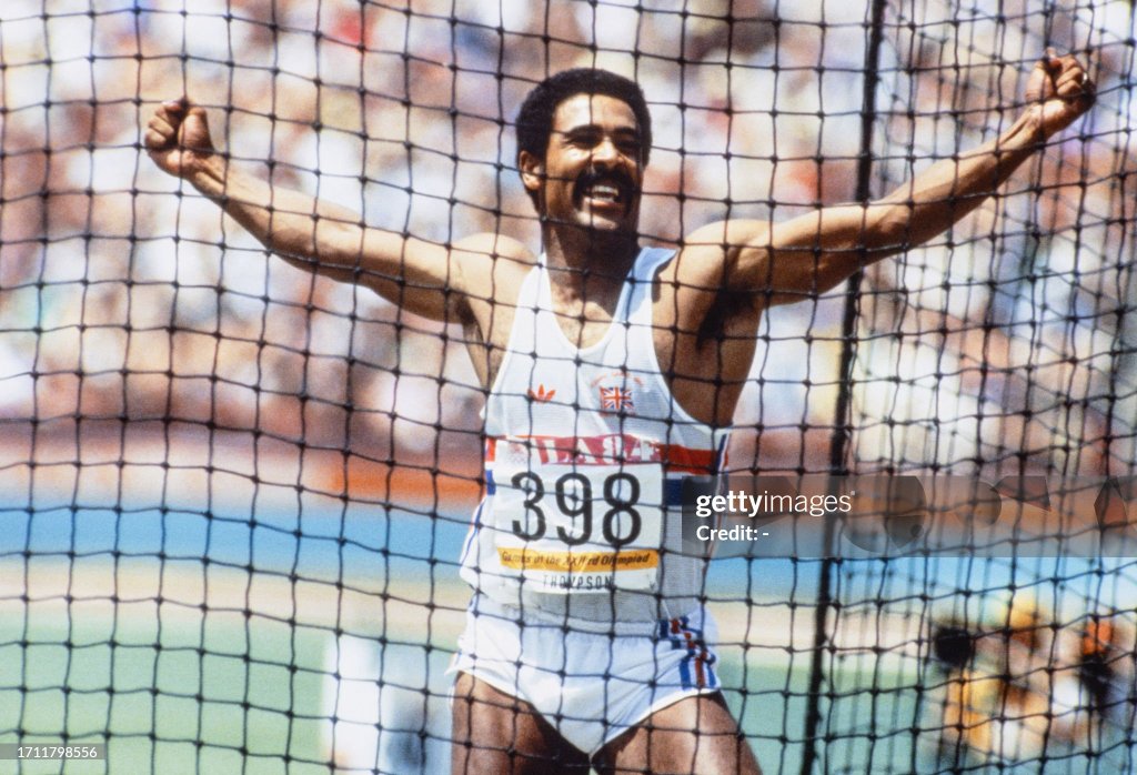 Daley Thompson of Briton won the decathlon gold medal in the Olympic Games, just as he did in 1980 in Moscow. The 26-year-old, heavily muscled and emotional Thompson won comfortably from Jurgen Hingsen of West Germany. His 8,797 points to win the decathlon is later recognized as a world record.