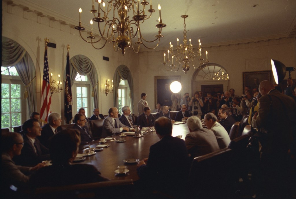 U.S. President Gerald Ford requested that all members of President Nixon’s Cabinet and all heads of U.S. Government agencies remain in office for “continuity and stability.”