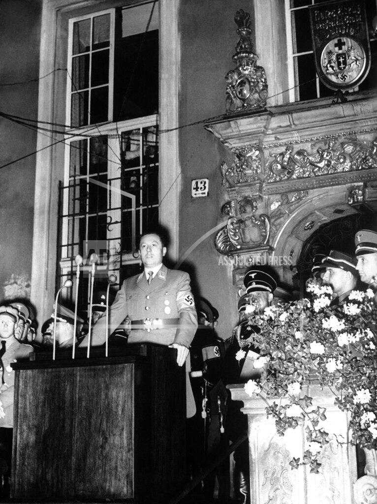 Gauleiter Förster warns his Danzig Nazis to be prepared for anything. Hurling defiance at “the cannon of Marshal Smigly-Rydz” and by implication warning Poland of a fourth and final partition, Albert Förster, the Danzig Nazi leader, in a speech at a mass rally in the medievally picturesque Long-Market here tonight, served notice on the world that Danzig wants to return to Germany. He expressed the hope that the day might not be far distant when Danzigers would meet again to celebrate their reunion with the great German Reich. The mass rally, called after Herr Förster’s return from his conference with Chancellor Hitler and organized with National Socialist thoroughness to embrace all Danzigers, was ostensibly a protest meeting against Polish “war agitation” and supposed aggressive designs on Danzig and German territory generally.