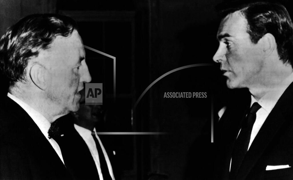 Ian Fleming, 56, former British intelligence officer and novelist who created the “James Bond” series of spy novels, of a heart attack.