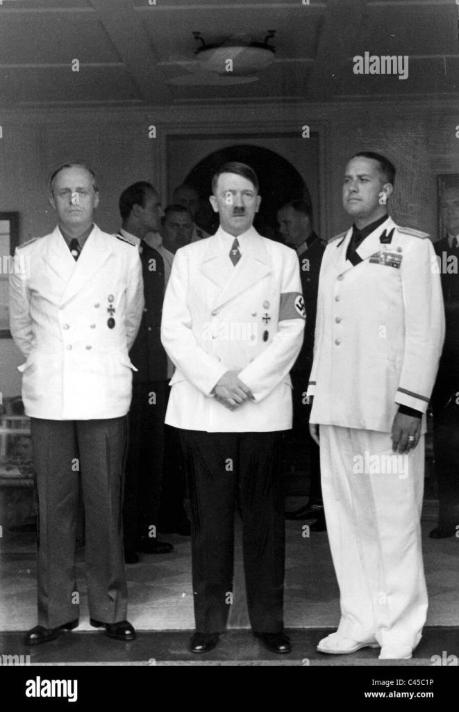 Count Ciano and Herr von Ribbentrop drove up to Obersalzburg together. The others who assisted Count Ciano during the discussions included Bernardo Attolico, Italian envoy to Germany, and Prince del Drage, Italian Foreign Office legal expert. The German delegation numbered among others Hans-Georg von Mackensen, Ambassador to Rome, and Dr. Friedrich Gaus, Foreign Office legal expert. The conversations lasted four hours and the presence of the legal experts led to the belief that some formal documents might be forthcoming.