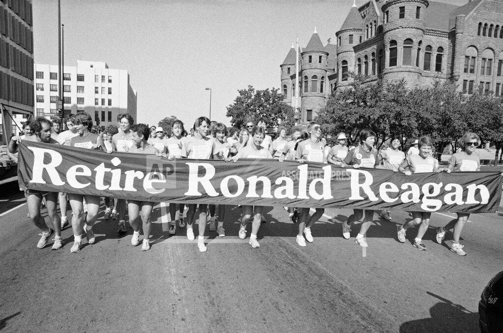 President Reagan makes a radio address to the nation about the Administration’s policies and programs. The Republican ideological lines of the Presidential campaign were set forth by President Reagan in his weekly radio address. As Republicans gathered in Dallas for their party’s 33d convention, Mr. Reagan asserted that voters faced “an historic choice” between his economic policies and Walter F. Mondale’s program of “higher taxes, more bureaucracy and a bigger welfare state.” He contrasted the Democrats’ economic agenda of “gloom and doom” with the “new patriotism” offered by the Republicans.