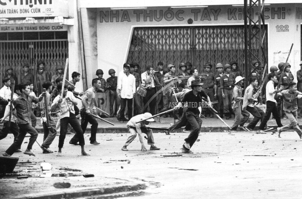 “This violence is terrible and against everything that we preach, but when our survival is at stake we have no choice.” A young Roman Catholic priest was speaking at the sprawling Nguyễn Da Tông secondary school in downtown Saigon. It had been under siege from Buddhist mobs all afternoon. Three youths, badly wounded in earlier rioting, were being tended by nuns in a poorly equipped aid room. One had been beaten on the head with a hatchet. Seven other youths had various head wounds but were walking. Two hours earlier a Buddhist youth, captured by Catholics, had been beaten severely on the street outside the school. The Buddhists took revenge two hours later by parading a Catholic prisoner through Saigon’s central market and then setting upon him with clubs and machetes. Several Western photographers said they were sure he had been killed.