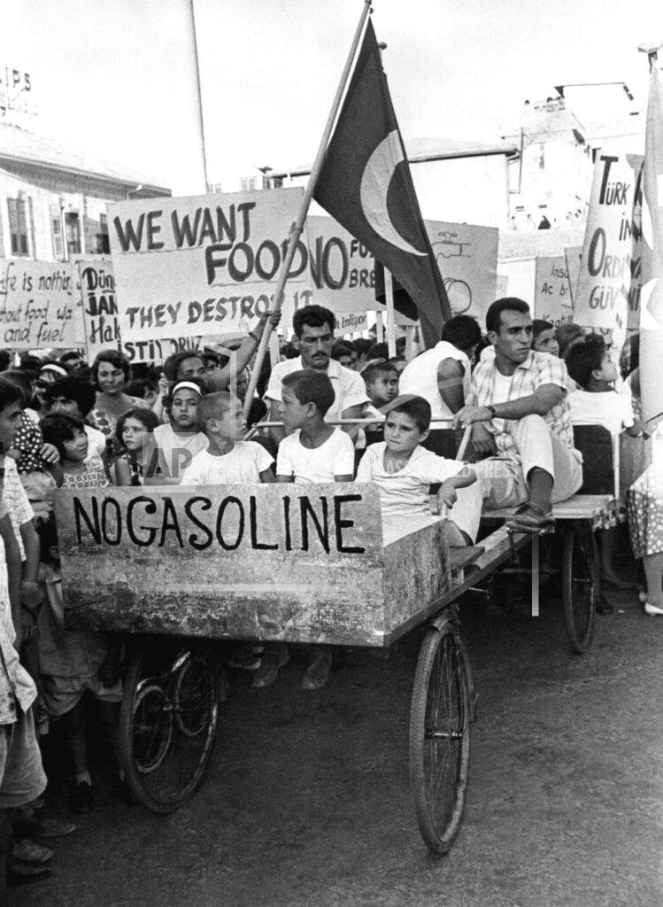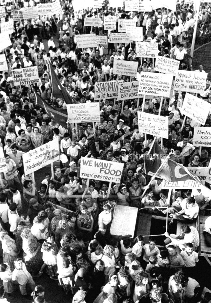The Turkish Cypriots of Nicosia demonstrated tonight against the economic blockade by the Government of President Makarios. A crowd of about 8,000 took part in the protest in Ataturk Square.