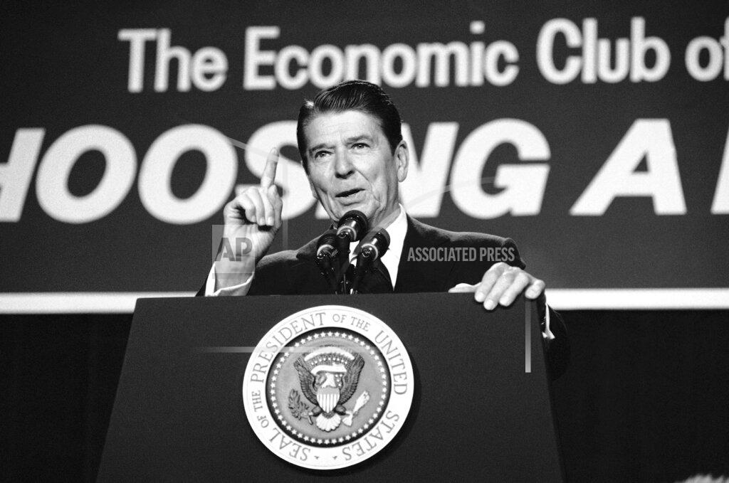 President Reagan participates in the “Choosing a Future” Conference sponsored by the Economic Club of Chicago. The $170 billion deficit can be cut by means of increased revenue from the economic recovery and further cuts in Federal spending, said President Reagan in a speech before the Economic Club of Chicago. In 1980 Mr. Reagan promised the same organization that he would balance the Federal budget by 1983.