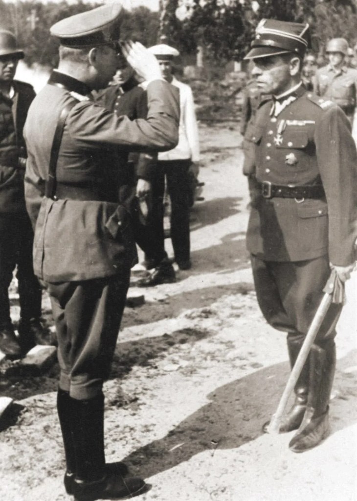 The Battle of Wizna began. According to Polish historian Leszek Moczulski, between 350 and 720 Poles defended a fortified line for three days against more than 40,000 Germans. Although defeat was inevitable, the Polish defence stalled the attacking forces for three days and postponed the encirclement of Independent Operational Group Narew fighting nearby. Eventually the tanks broke through the Polish line and German engineers eliminated all the shelters one by one. The last shelter surrendered around midday on September 10. Because the battle consisted of a small force holding a piece of fortified territory against a vastly larger invasion for three days at great cost before being annihilated, Wizna is sometimes referred to as the “Polish Thermopylae”. One of the symbols of the battle is Captain Władysław Raginis, the commanding officer of the Polish force, who swore to hold his position as long as he was alive. When the last two shelters under his command ran out of ammunition, he ordered his men to surrender their arms and committed suicide by detonating a grenade against his neck.