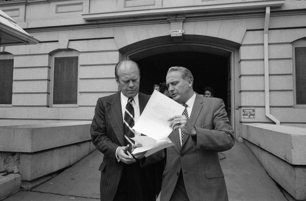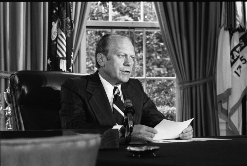 Ford made an unpopular decision that would ultimately cost him the 1976 U.S. presidential election, as he announced in a nationally televised speech that he had granted a “full, free and absolute pardon” to his predecessor, former President Richard Nixon, for any crimes that Nixon might have committed during the Nixon presidency. Ford said in his speech, “I have come to a decision which I felt I should tell you and all of my fellow American citizens, as soon as I was certain in my own mind and in my own conscience that it is the right thing to do.” He added that the Watergate scandal “could go on and on and on, or someone must write the end to it. I have concluded that only I can do that, and if I can, I must.” He noted that, “I am compelled to conclude that many months and perhaps more years will have to pass before Richard Nixon could obtain a fair trial by jury in any jurisdiction of the United States,” and that “During this long period of delay and potential litigation, ugly passions would again be aroused. And our people would again be polarized in their opinions. And the credibility of our free institutions of government would again be challenged at home and abroad.” Ford then read the text of Proclamation 4311 aloud.