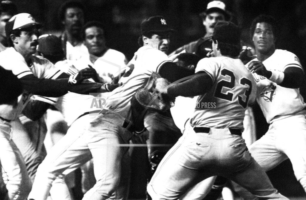 The New York Yankees were frustrated tonight by the bunt, the bloop and then the home run, and lost to the Toronto Blue Jays, 10–3. The bunt by Cliff Johnson was unpredictable, the bloop hits were uncanny and the homers were crushing blows that came in the four-run fifth and gave Toronto an 8–0 lead. But this game was memorable for what followed the homers, a high fastball by Dennis Rasmussen that flew by Willie Upshaw’s eyes and the brief skirmish the pitch created. Upshaw was the first man to bat for the Blue Jays following the second of the two home runs in the fifth, and that in the time-honored logic of baseball meant that Upshaw could expect to see a pitch close to his body, the pitcher’s method of re-establishing his presence. But the ball nearly struck Upshaw in the head and he rushed the mound.