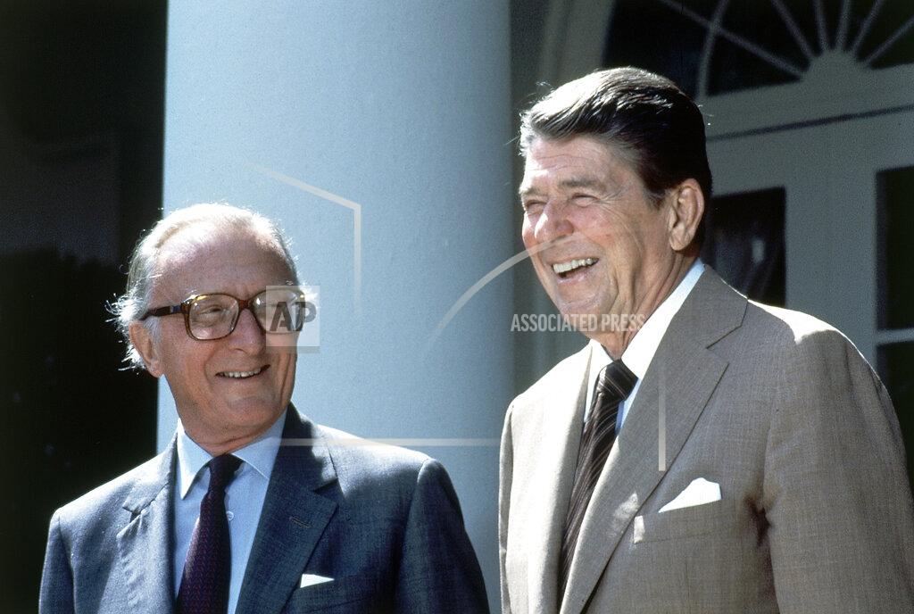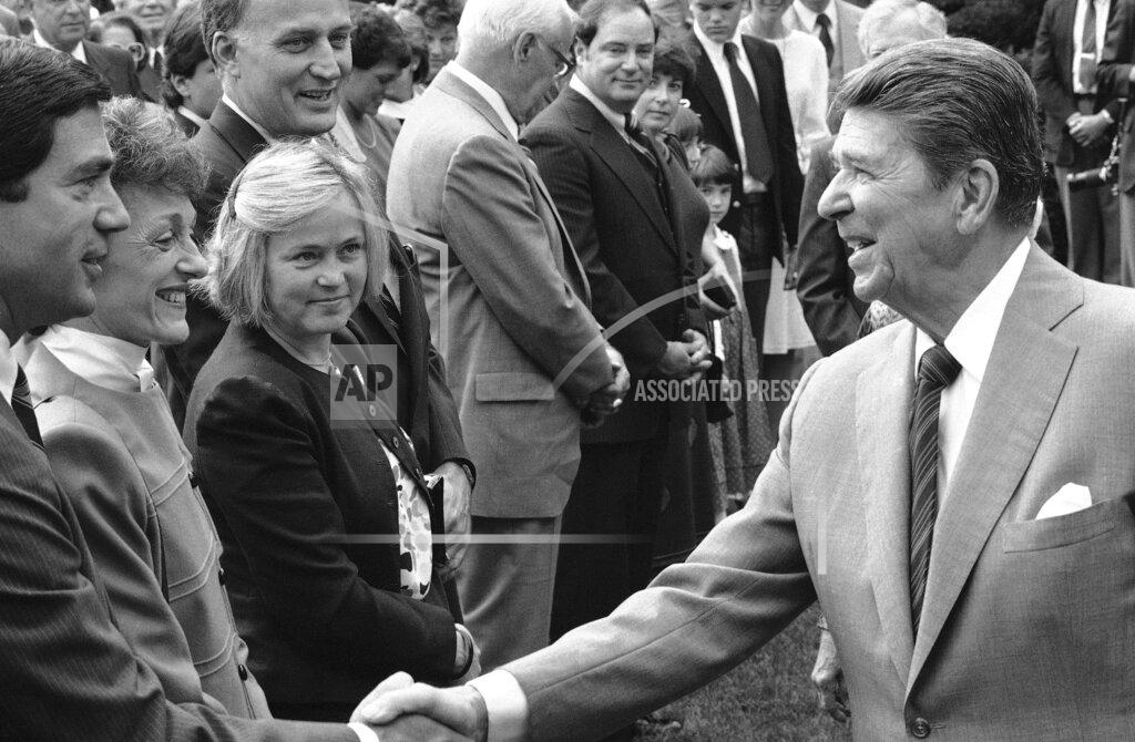 President Reagan participates in a Congressional Gold Medal Ceremony for the late Senator Hubert Humphrey.