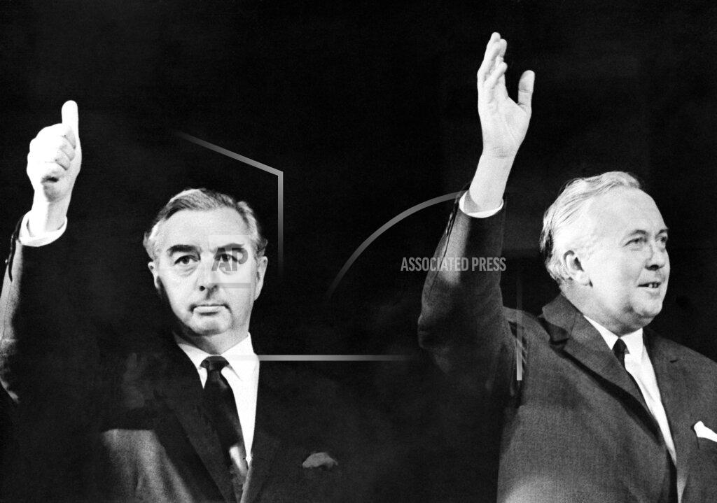 A few miles across London, Harold Wilson, the Laborite leader, addressed an enthusiastic mass meeting of the party faithful, visibly and cheerfully excited at the prospect of taking over the leadership of Britain in little more than a month. Mr. Wilson assailed the Conservatives as the party of privilege, as a selfish class‐conscious lot determined to conserve their privileges. The themes were as expected, and they were repeated up and down the land at lesser rallies by lesser political lights.