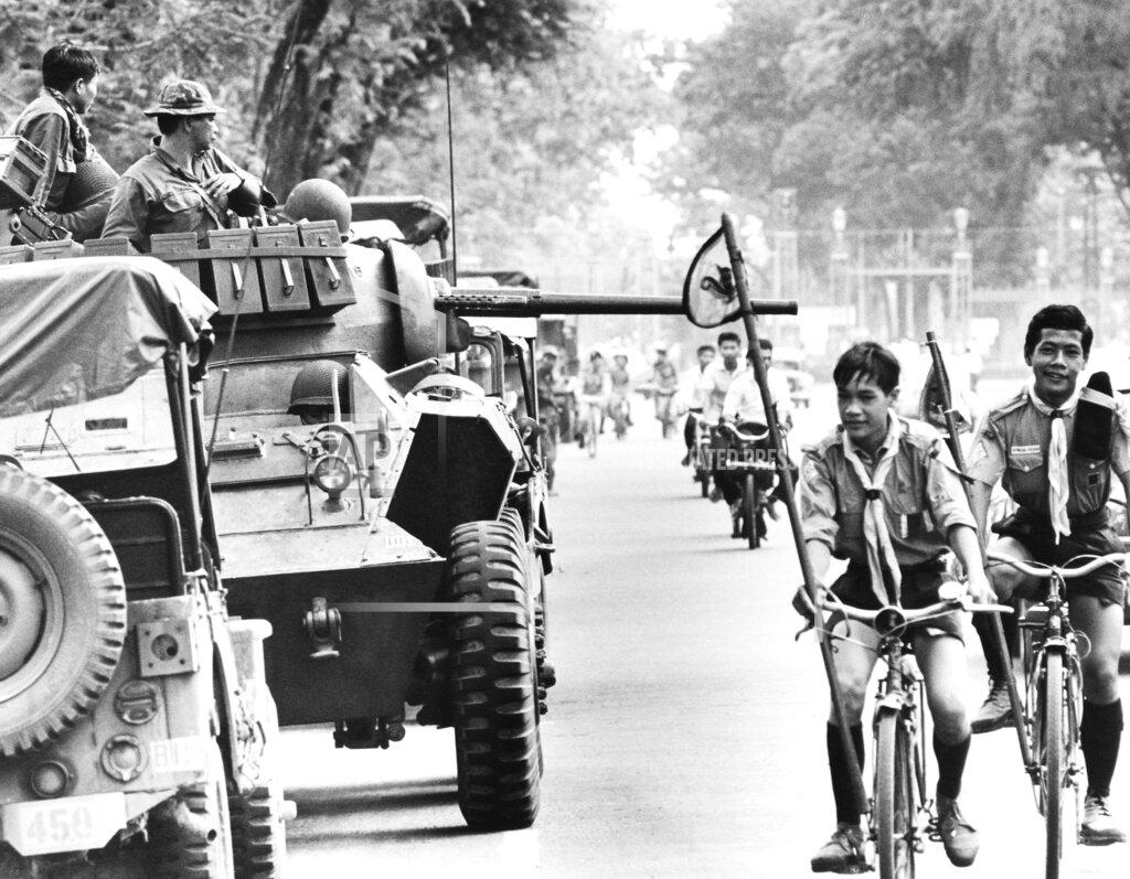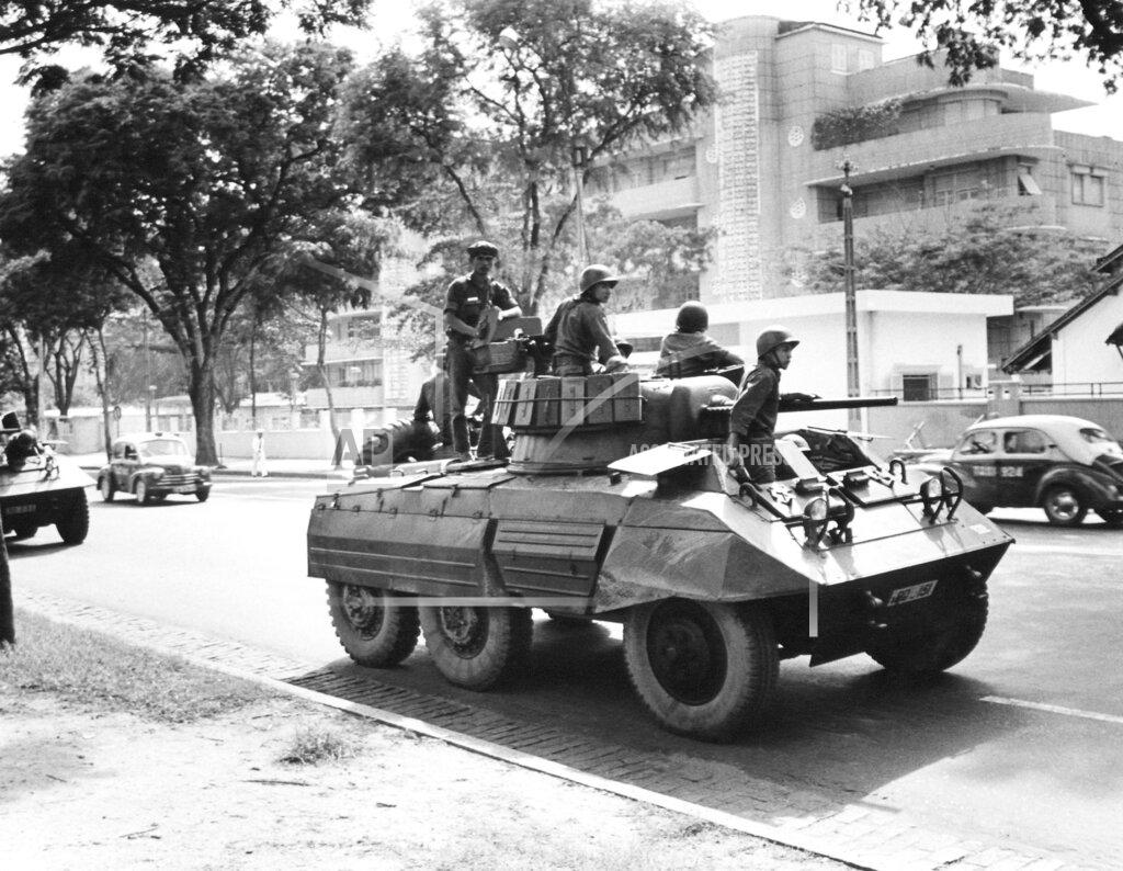 Four battalions of rebel troops moved before dawn towards Saigon from the Mekong Delta, with armored personnel carriers and jeeps carrying machine guns. After cowing a police checkpoint on the edge of the capital, they put sentries in their place to seal off Saigon from incoming or outgoing traffic. They then captured communication facilities in the capital. As the rebel troops took over the city without any firing and sealed it off, Phát sat in a civilian vehicle and calmly said, “We’ll be holding a press conference in town this afternoon at 4 pm.”