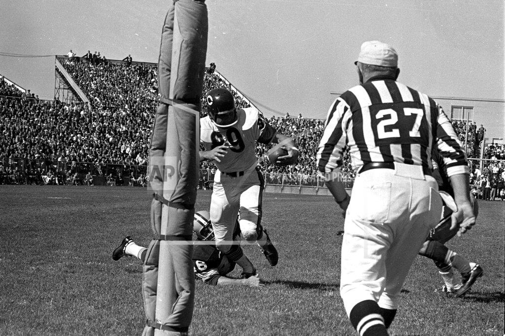 Paul Hornung ran, kicked and passed his way back into the hearts of Green Bay Packer fans today and showed why the Packers were favored to regain the Western Conference title of the National Football League. The Golden Boy, who spent the 1963 season under suspension for gambling on NFL games, was greeted warmly by the 42,327 fans at City Stadium and once again was the local hero as he led the Packers to a 23–12 victory over the league champions, the Chicago Bears. Last season, Chicago beat the Packers twice in the deciding games for the Western championship and went on to defeat the New York Giants for the league title. The 28‐year‐old Hornung kicked three field goals, 2 extra points, ran for 77 yards and tossed a pass for 9 yards and an important first down. One of his field goals came on a rarely used maneuver. With seconds remaining in the first half, Elijah Pitts made a fair catch of a punt on the Green Bay 48, The Packers then lined up for a free kick from placement (similar to a kickoff alignment) and Hornung booted the ball 52 yards for 3 points on the final play of the half.
