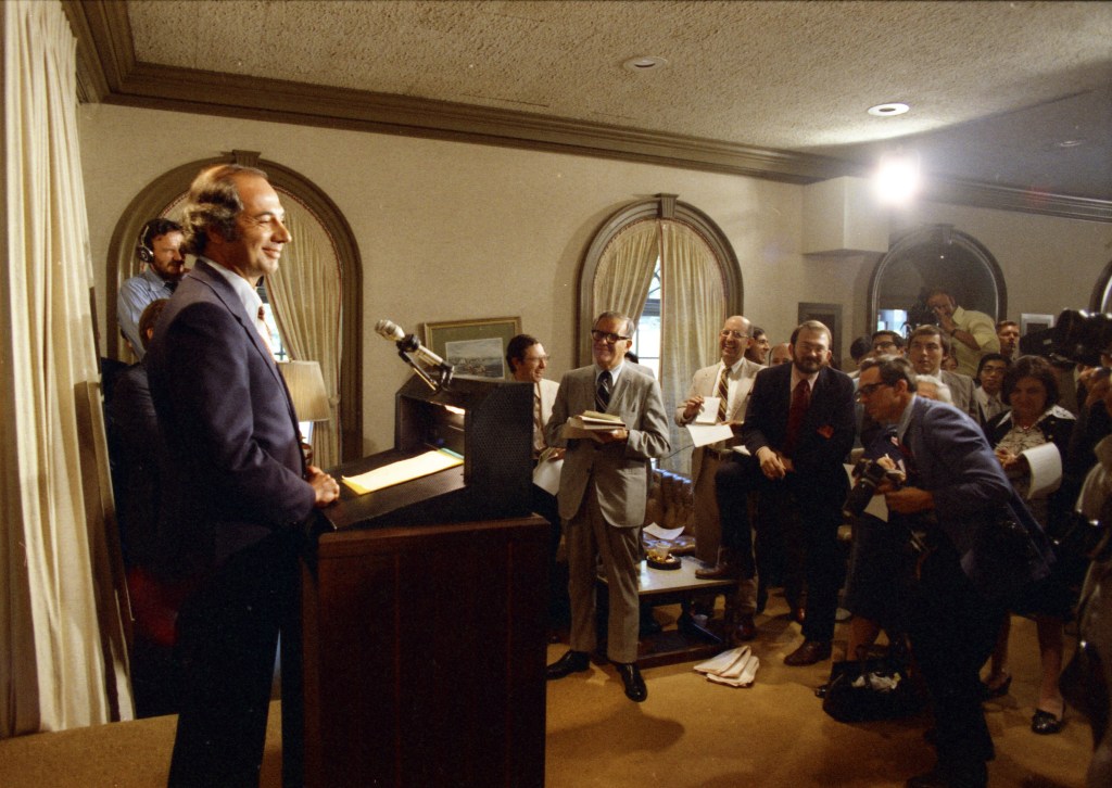 Dr. Arthur Burns, chairman of the Federal Reserve Board, termed the recent decline in short-term interest rates as “encouraging” and said that “tensions” in the country’s financial markets have recently been reduced to some degree. But while indirectly confirming in this fashion that the Federal Reserve has moved to a slightly less restrictive policy on money and credit, Dr. Burns cautioned that “In view of the intensity of inflation, a policy of moderate monetary restraint remains appropriate.” His remarks were made at another of the “pre‐summit” conferences leading up to general conference on inflation called by President Ford for the end of next week. Today’s session involved leaders in banking and finance. President Ford, meanwhile, asked Congress to defer or rescind about $600‐million in spending in the current fiscal year, which ends next June 30, The request had been expected, but the surprise was that the proposed cutback was so low.