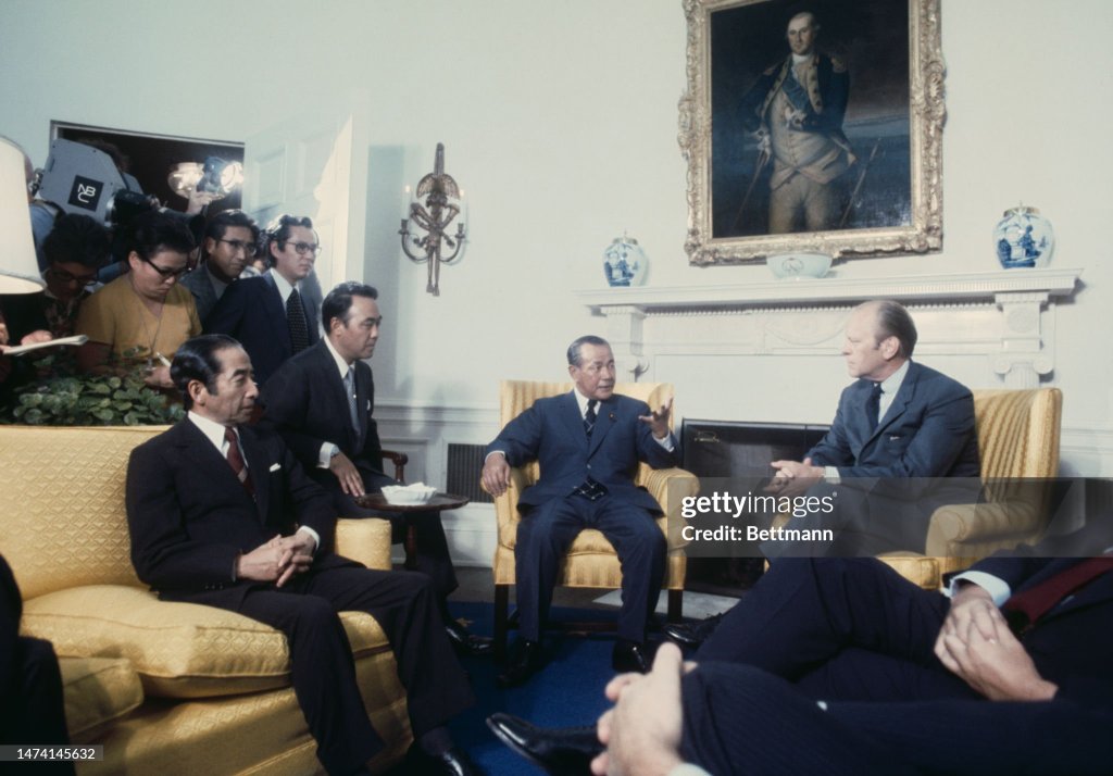 President Ford and Prime Minister Kakuei Tanaka of Japan met for the first time and reaffirmed strong economic, military and political ties. The meeting at the White House was a preview of the summit conference the two will hold in Tokyo in November. Earlier, the President met with Soviet Foreign Minister Andrei A. Gromyko to discuss détente. A spokesman said no breakthroughs were achieved but Gromyko was invited back for further discussions. Mr. Ford also met with Argentina’s foreign minister, Alberto J. Vignes, to discuss the decision of the Organization of American States to consider lifting its embargo against Cuba.