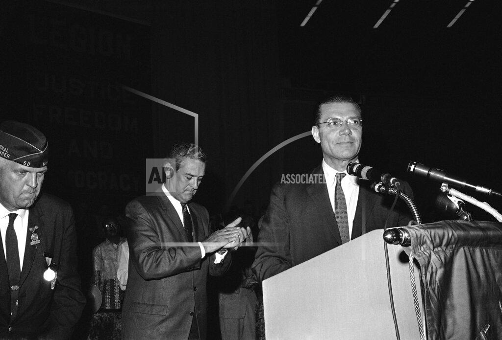 “We have got to see to it,” Mr, Meany said, “that we have an administration in Washington under which we can progress, under which we can face the very difficult international and domestic problems that are before us, and we have got a job to do, and we have the members and we have the votes, but having the members and having the votes doesn’t mean anything unless you get those votes in the ballot box.” Mr. Meany sharply attacked the record of Senator Barry Goldwater of Arizona, the Republican Presidential candidate, and compared his rise to that of Hitler. Nobody paid much attention to Hitler, Mr. Meany said, but “suddenly the crackpot” took over. Mr. Meany warned against being complacent in the face of what he called the threat now posed by Senator Goldwater.