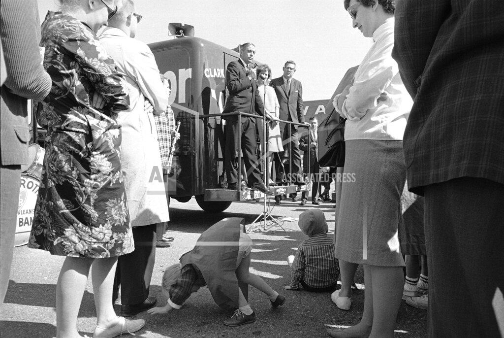 He never mentioned the Republican Presidential candidate, Senator Barry Goldwater of Arizona, by name. He denounced the philosophy of the “soup line” and criticized “prejudice and bigotry and hatred and division.” Saying there was no limit to what a united, tolerant nation could achieve, Mr. Johnson turned a Republican slogan to his own purposes, declaring, “And you know in your heart that I am telling you the truth.” The 3,500 union delegates, many of them wearing five‐gallon LBJ hats, had endorsed the President’s candidacy earlier.