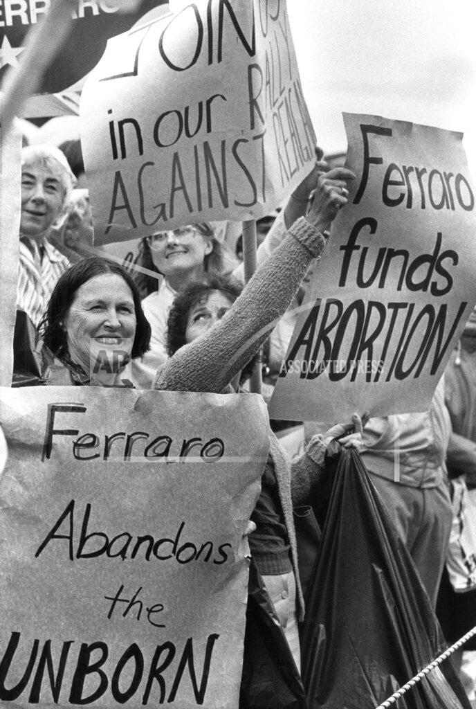 As Geraldine A. Ferraro addressed a rain-spattered campaign rally in Boston today, Ruth Packard pressed toward the front of the crowd and raised a hand-lettered sign high above her head. It showed a drawing of the Democratic Vice-Presidential candidate and read, “I voted 14 times to kill the unborn.” Mrs. Ferraro has been dogged by anti-abortion protesters throughout her campaign, and demonstrators acknowledge that, on a local level, they have mounted a highly organized effort to embarrass the candidate and gather publicity for their cause. “We got together and decided we’d be here and make our views known,” said Carolyn Longo, a demonstrator who attended a Ferraro rally Tuesday in Youngstown, Ohio,