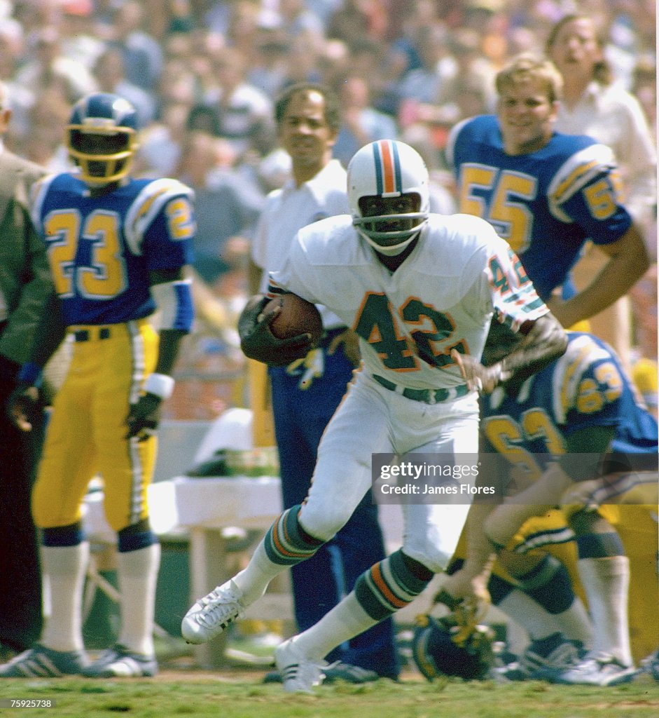 A 5‐yard off‐tackle smash by Jim Kiick with 15 seconds left gave the Miami Dolphins a 28–21 victory over the San Diego Chargers after they had trailed, 21–7. Nat Moore, who had scored an earlier touchdown, returned a low punt 30 yards to the Charger 42 with 1:50 left to set up the final scored. Don Woods, a free agent who failed in earlier tryouts with Dallas and Green Bay, raced 56 yards off tackle in the third quarter for his second touchdown to build up the charger lead.