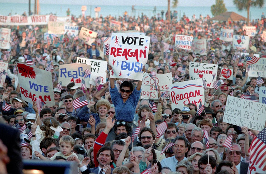 President Reagan stops his motorcade to participate in a brief Q & A session with students from Bayou View Elementary School.