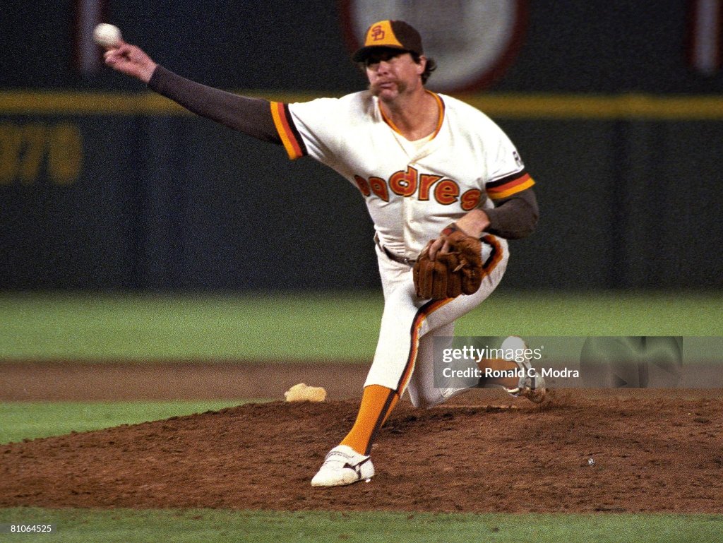 In Game Three of the National League Championship Series, the San Diego Padres take a lead in an National League Championship Series game for the first time, and they go on to down the Chicago Cubs. The series moved to San Diego, and the Padres staved off elimination with a convincing 7–1 win. During pregame ceremonies, the normally reserved Padres shortstop Garry Templeton encouraged the crowd by waving his cap. He ended a Cubs’ rally in the first inning with an acrobatic catch of a line drive from Leon Durham. However, San Diego actually fell behind 1–0 in the second when Chicago’s Keith Moreland doubled and came home on Cey’s single to center. The Cubs threatened to score more that inning, but Templeton made another excellent play, diving to his right on a line drive from Dernier that appeared destined for left field. But the Cubs would get no more off Padres starter Ed Whitson, while San Diego’s bats finally came to life with seven runs in the fifth and sixth off of Dennis Eckersley. Terry Kennedy and Kevin McReynolds led off the fifth with back-to-back singles, then scored on Garry Templeton’s double, giving San Diego their first lead of the series at 2–1. One out later, Templeton scored on Alan Wiggins’s single to make it 3–1, Padres. Next inning, Tony Gwynn hit a leadoff single, moved to second on a groundout and scored on Graig Nettles’s single. George Frazier relieved Eckersley and allowed a single to Kennedy before McReynolds’s three-run home run gave the Padres a commanding 7–1 lead. Rich Gossage pitched a dominating ninth inning to wrap up the win for San Diego, their first postseason win in franchise history.