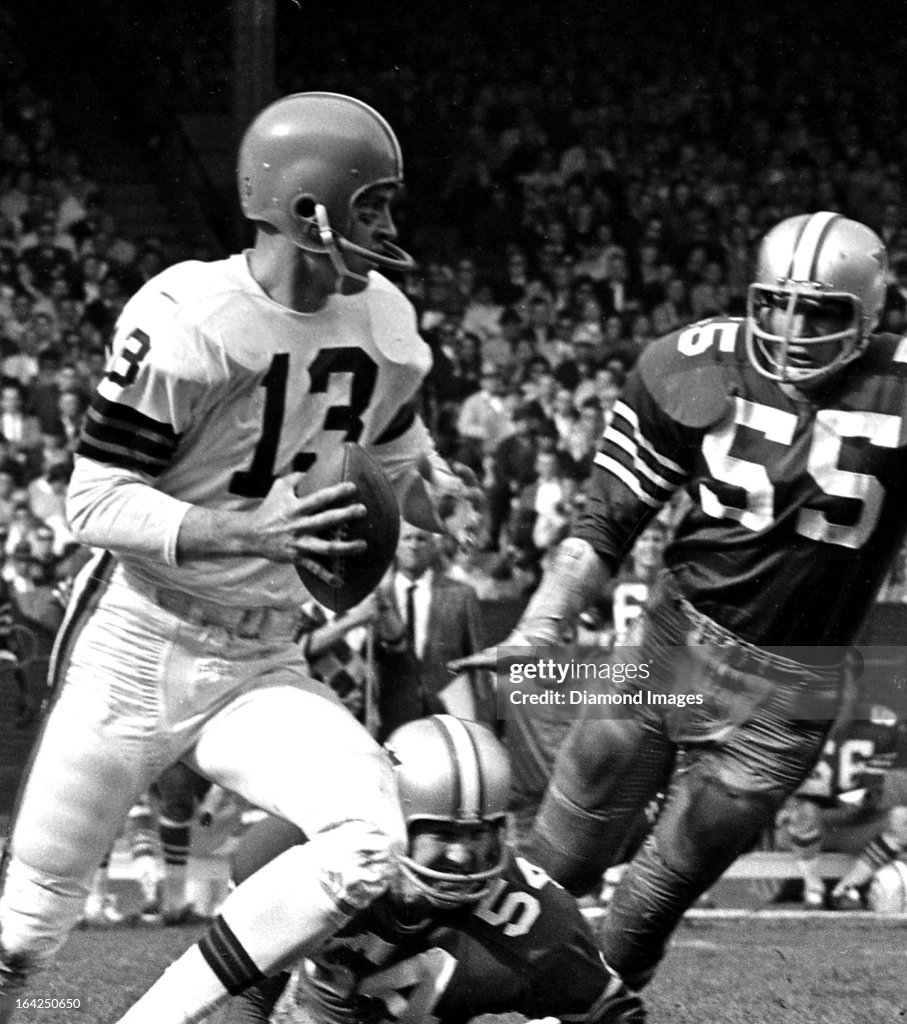 Frank Ryan passed for three touchdowns today as the Cleveland Browns routed the Dallas Cowboys, 27–6, and remained tied for first place in the Eastern Conference of the National Football League with St. Louis. The Browns’ rugged defensive unit kept the pressure on the Dallas quarterback, John Roach, throughout the game and blocked two field goal attempts by Dick Van Raaphorst. Ryan fired a 40‐yard scoring pass to Paul Warfield with only seconds left in the third period to give Cleveland a. 20–6 lead. A few minutes later, Ryan hit Gary Collins with a 38‐yard touchdown pass. Ryan tossed an 7‐yard scoring aerial to Ernie Green in the first quarter and then set up two field goals by Lou Groza in tha first half. Green’s first touchdown pass capped a 60‐yard drive after the Browns had blocked a 25‐yard field goal attempt by Van Raaphorst. The key play of the drive was a 41‐yard screen pass from Ryan to Warfield. The Cowboys never caught up.