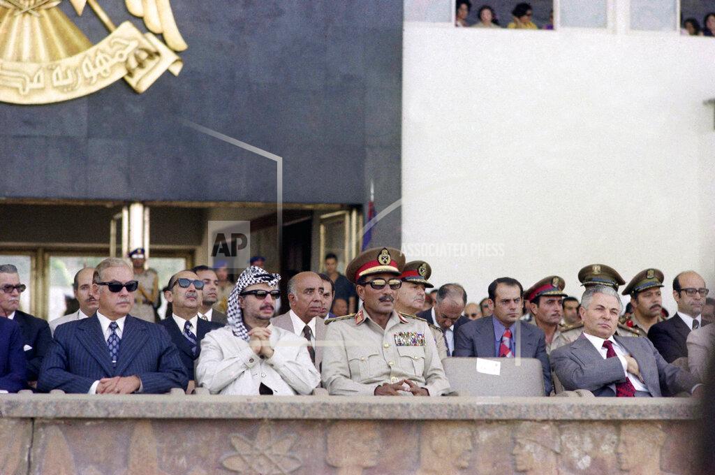 The parade today was the first by Egypt’s armed forces since the six‐day war of June, 1967 which ended in Arab defeat and brought the Israelis to the eastern bank of the canal. Tens of thousands of Egyptians walked for an hour or more under a scorching sun from downtown Cairo to reach the parade ground in Nasser City, a new housing development long under construction on the edge of the desert. The mood of the spectators was festive rather than martial. They surged forward in excitement and, although held back by unarmed soldiers, thousands came within inches of being crushed by heavy tanks passing in formation. The crowd clapped, cheered and whistled happily as the weapons passed and also upon the arrival and departure of President Sadat, who watched the parade flanked by Yasser Arafat, head of the Palestine Liberation Organization, and Field Marshall Ahmed Ismail, the Egyptian Commander in Chief.