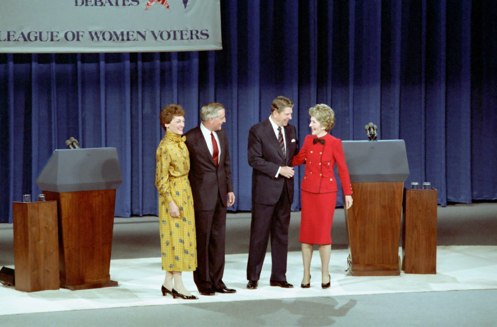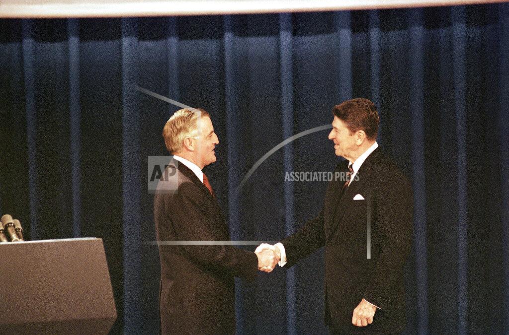 President Reagan participates in the first presidential debate, focused primarily on domestic issues. In their first debate of the campaign, President Reagan and Walter F. Mondale engaged in blunt, sometimes highly personal exchanges as they clashed on a wide variety of economic and social issues. Mr. Mondale, who went into the debate trailing badly in the public opinion polls, challenged Mr. Reagan to tell how he would reduce the budget deficit and accused him of a failure of leadership. Mr. Reagan asked “Are you better off than you were four years ago?”