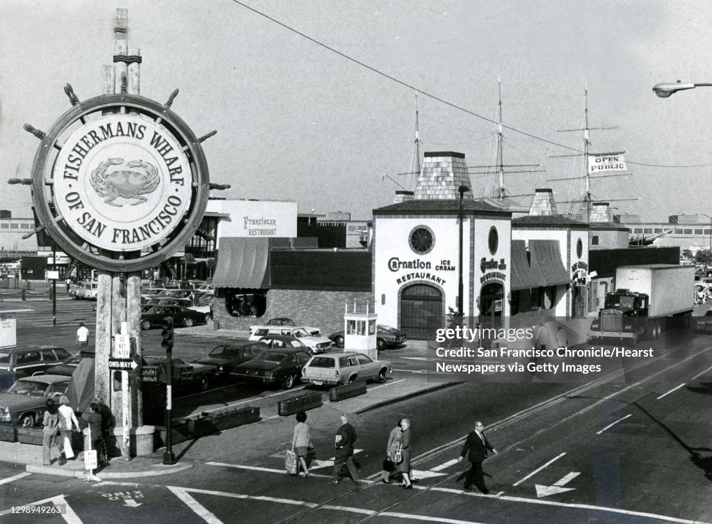 [Ed: The Franciscan Restaurant, in the background, is still there. One of the last of the old Fisherman’s Wharf restaurants. The ice cream place is long gone. A Boudin’s Bistro is in a new building on the site.]