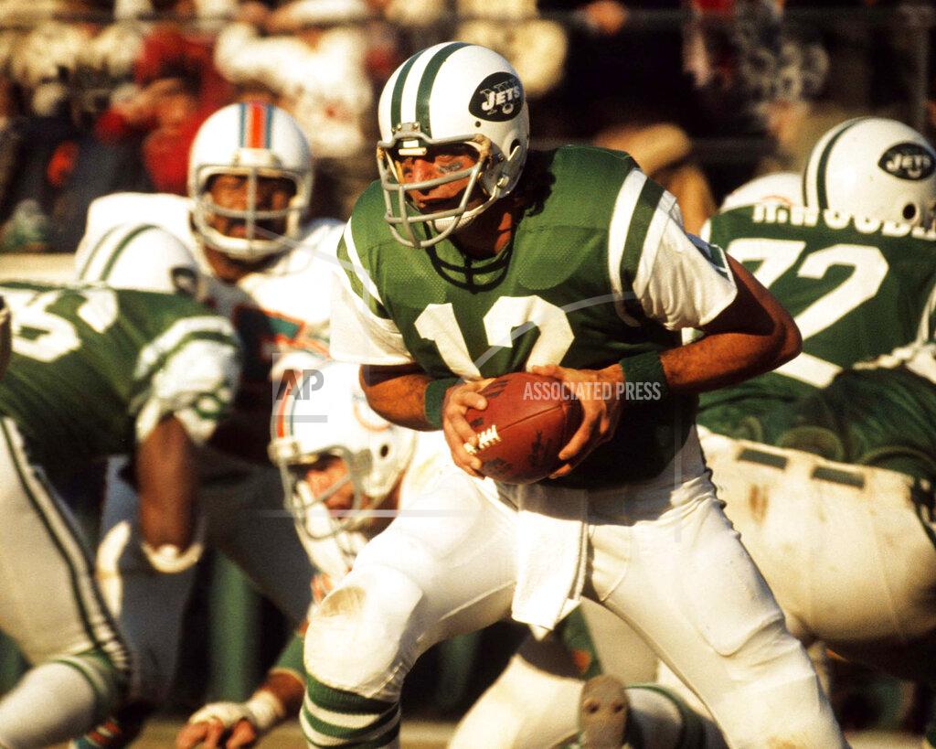 The New York Jets extended the Miami Dolphins right to the end of their game here tonight but lost, 21–17. It was close. On the New York team’s next‐to‐last offensive play, Tim Foley, the Miami cornerback, knocked the ball out of Jerome Barkum’s hands as Barkum went for a pass from Joe Namath at the Dolphin 2‐yard line. On the Jets’ last offensive play, with 13 seconds remaining, another Namath pass went off the hands of the leaping Barkum, and Jake Scott intercepted the deflected football for Miami. This was a two‐part game, played in muggy 85‐degree heat before a crowd of 60,727 in the 80,000‐seat Orange Bowl. There were 20,000 noshows. Miami had all the best of Part I, which was the first half, while the Jets were very much alive and kicking in Part II, the second half. Two big plays in the final period decided the contest. Hubert Ginn, an obscure reserve running back for the Dolphins, sprinted around right end and raced 41 yards for a touchdown that put Miami ahead, 21‐10. Then Namath struck. He completed the longest touchdown pass play in Jet history, 89 yards to Richard Caster, his tight end. Caster caught the ball among four Dolphins and ran 55 yards more for the score, which left New York 4 points behind with 6 minutes remaining. But the Jets came up just short on their last-minute drive.