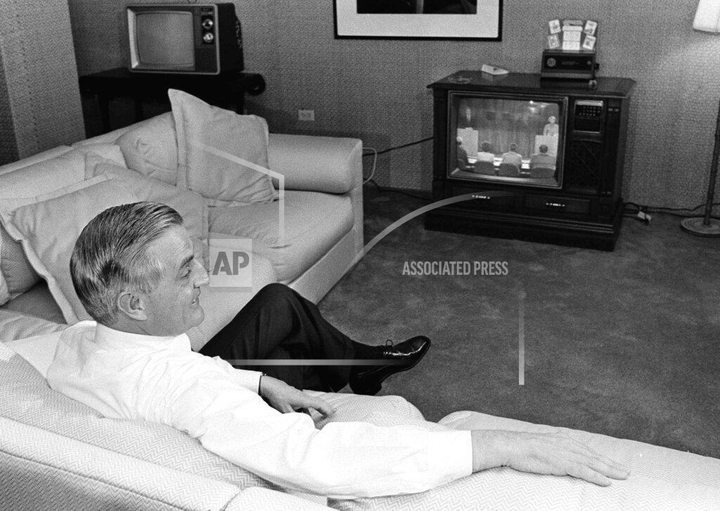 President Reagan enjoys lunch with Vice President Bush.