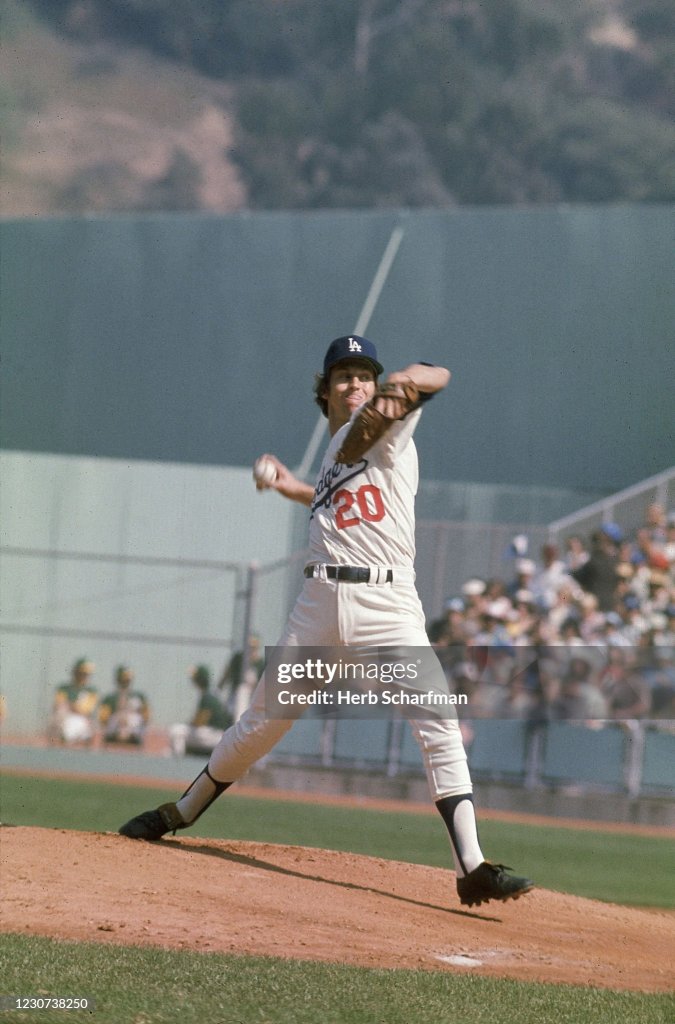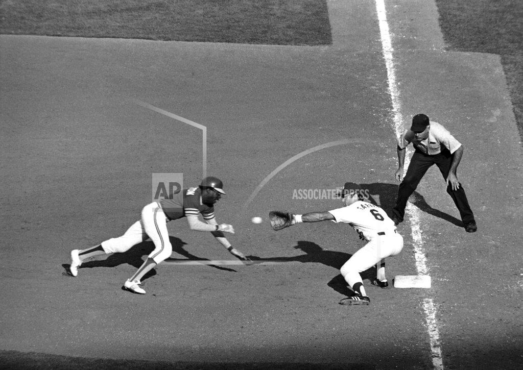 The Los Angeles Dodgers, behind Don Sutton, even the 1974 World Series with a 3–2 Game 2 win over the A’s. Don Sutton pitched superbly, shutting out the A’s on four hits through eight innings. The Dodgers scored first in the second off Vida Blue when Ron Cey walked, Bill Russell singled, and Steve Yeager singled home Cey. Joe Ferguson slammed a two-run homer off Blue in the sixth inning to make it 3–0. The A’s threatened in the eighth when pinch hitters Jim Holt and Claudell Washington hit back-to-back singles with one out. Bert Campaneris reached on an infield error to load the bases. The rally was squelched when Bill North hit into a double play in which first baseman Steve Garvey made an exceptional pickup of a low throw by Russell. In the ninth inning the A’s finally got on the board when Sal Bando led off with being hit by a pitch, Reggie Jackson followed with a double, and Joe Rudi singled both runners home. Mike Marshall then relieved Sutton and struck out Gene Tenace. Herb Washington was sent in to pinch-run for Rudi, and Marshall picked him off. Herb Washington was the only “designated runner” to appear in a World Series. Washington was a track star with no baseball experience whom the A’s Charles Finley signed solely to appear as a pinch runner in late game situations. His stats for 1974 were 92 games, zero at bats, 29 runs scored, 29 stolen bases, but he was caught stealing 16 times. Sure enough, with the A’s trailing 3–2 in the ninth inning of Game 2, Washington pinch ran. Just after announcer Vin Scully said that Washington better be careful because pitcher Mike Marshall has a good pickoff move, he was promptly picked off first base. Marshall then retired Ángel Mangual for the final out.