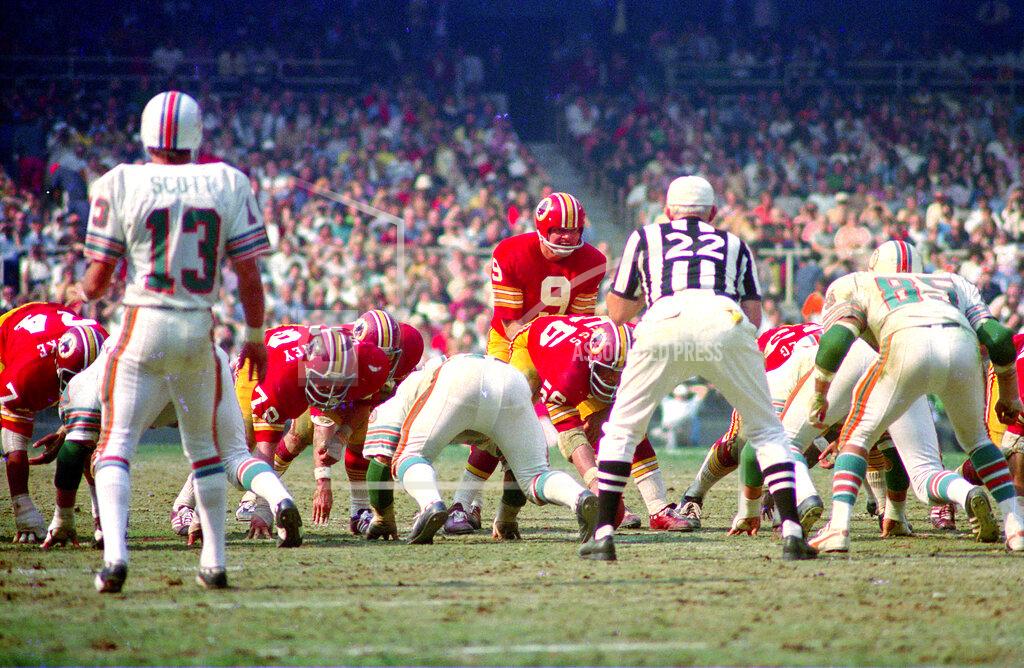 Sonny Jurgensen, back in his old slot as the starting quarterback, marched the Washington Redskins 60 yards in 90 seconds yesterday, hitting six of seven passes. His final completion — 6 yards to Larry Smith — gave the Redskins the winning touchdown in a 20–17 victory over the Miami Dolphins at Washington. The 40-year-old passing ace reclaimed the starting job from Billy Kilmer after a strong relief performance last week against Cincinnati. He completed 26 of 39 tosses against the Dolphins for 303 yards and two touchdowns. Early in the fourth quarter, he hit Roy Jefferson for 37 yards and a touchdown. On the last-minute drive Jurgensen threw completions to Moses Denson, Smith, Charley Taylor and Jefferson. After his only miss on the march, he hit Taylor with 16 seconds left.
