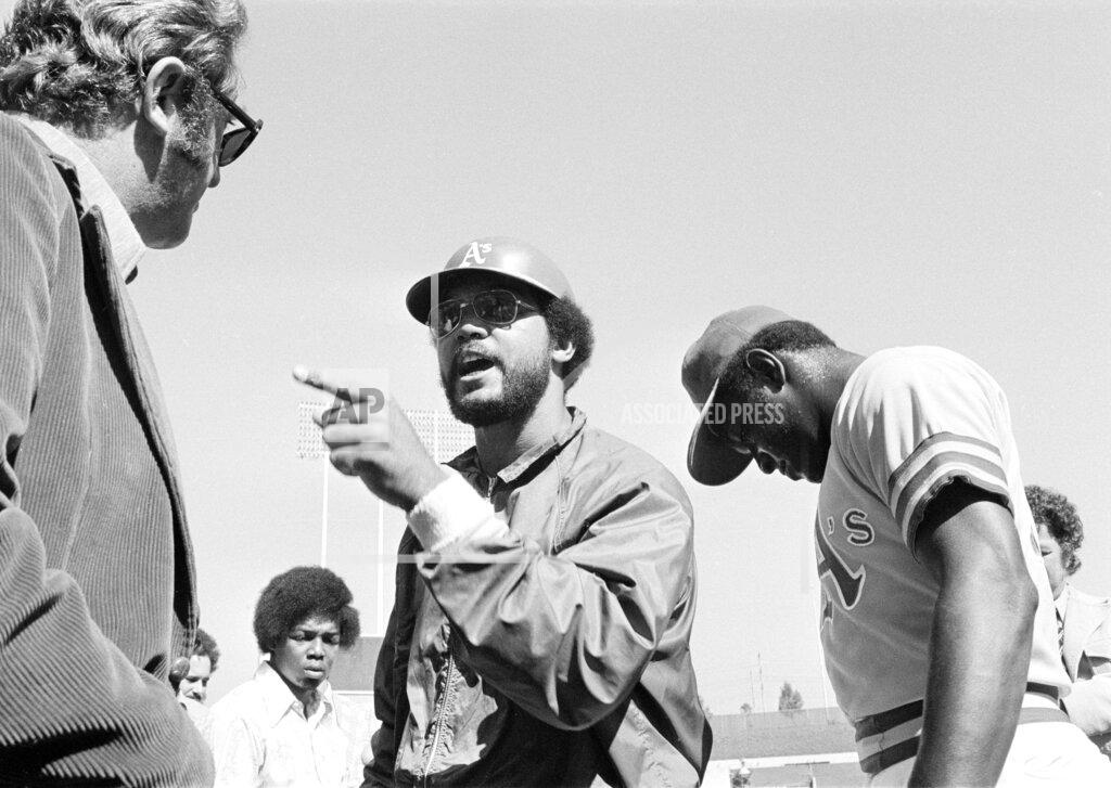Reggie Jackson gives syndicated columnist Murray Olderman an earful after Jackson was displeased with his story in Sport magazine during a workout at the Oakland-Alameda County Coliseum. Jackson will lead his team to a third straight title vs the Dodgers.