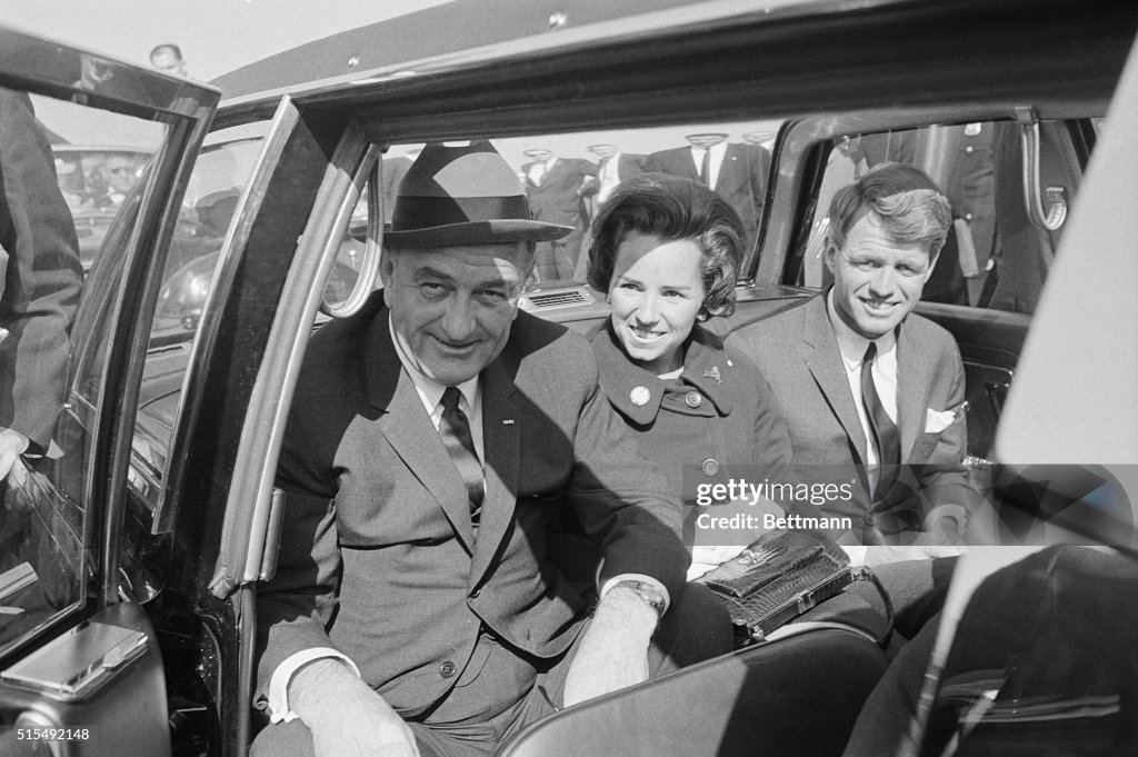 President Johnson today threw his arm, literally and figuratively, around the Democratic candidate for the Senate, Robert F. Kennedy. All through the day the President showed his support for the former Attorney General. He spoke privately with Mr. Kennedy for an hour in the President’s suite at the Waldorf-Astoria Hotel in New York. He talked animatedly with the Democratic Senate candidate on a ride in a motorcade. Mr. Johnson and Mr. Kennedy paid a call on Mrs. John F. Kennedy, widow of President Kennedy, at her new apartment. The trip to Mrs. Kennedy’s apartment was made without fanfare or official escort in a six‐car motorcade. There were no sirens or flashing lights. The party stopped at all red lights, and the President was largely unrecognized by the public.