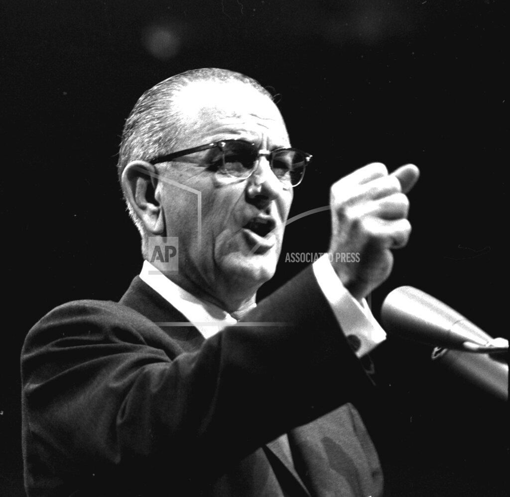 President Johnson characterized Senator Barry Goldwater last night as one of, “a few lonely voices” whose principles would endanger the safety of the country and the world’s hopes for peace. In a television broadcast, he hailed the signing of the nuclear test‐ban treaty a year ago as “a momentous step along the road to peace.” He said, however, that had the country listened to Senator Goldwater, who Voted against the treaty, “we would have continued the upward spiral of tension and danger and the contamination of the world around us.” The speech was taped a week ago, and was televised nationally over the CBS‐TV network.