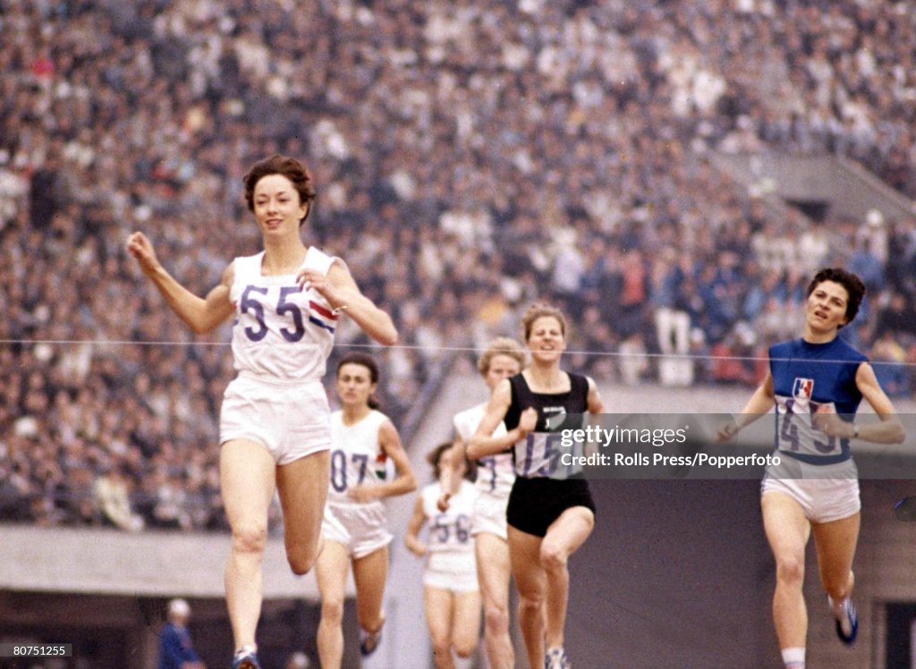 Ann Packer of Great Britain runs a world record 2:01.1 to win the women’s 800m gold medal at the Tokyo Olympics.