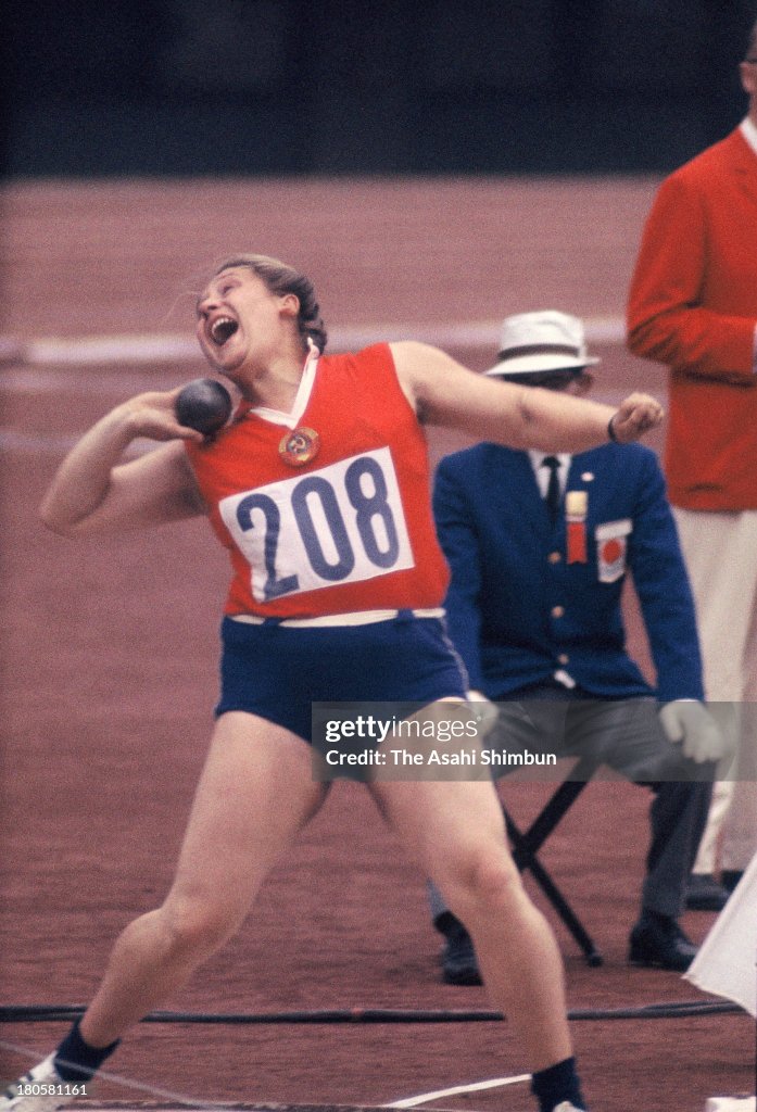Tamara Press of the Soviet Union wins her second gold medal in 2 days by taking out the women’s shot put at the Tokyo Olympics; Press’ second consecutive Olympic shot put title.