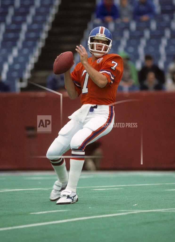The Denver Broncos’ defense set up two touchdown passes by John Elway as the Buffalo Bills (0-8) were routed, 37–7. But Elway, who threw a 52-yard scoring pass to Steve Watson and a short, roll-out touchdown to Clarence Kay, suffered a bruised shoulder late in the second quarter and left the game. The Bronco wide receiver Clinton Sampson was taken to Buffalo General Hospital after suffering a concussion. He was listed in stable condition. The Broncos (7-1) also got a 3-yard touchdown scramble from the back- up quarterback Gary Kubiak, a short touchdown pass from Kubiak to Sammy Winder and three field goals by Rich Karlis, all at least 40 yards.