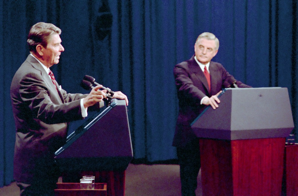 President Reagan participates in the second 1984 Presidential Debate with Democratic Presidential candidate Walter F. Mondale. The final Presidential debate between President Reagan and Walter F. Mondale was marked by sharp exchanges on foreign policy and Mr. Reagan’s competence. Mr. Mondale sought to undermine the President’s leadership by assailing him for not curbing the Central Intelligence Agency’s activities in Central America, not protecting Americans in Lebanon and not mastering the subject of nuclear arms control. Mr. Reagan linked the former Vice President to economic and military policies that he said were rejected four years ago.