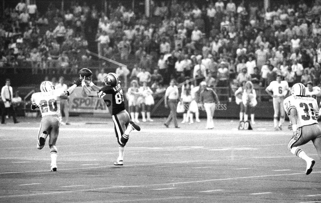 Joe Montana threw for 353 yards and three touchdowns to lead the San Francisco 49ers to a 34–21 victory over the winless Houston Oilers. The 49ers (7–1) took the opening kickoff and drove 83 yards in 10 plays for a 7–0 lead. Montana passed for 52 yards in the drive, including an 11-yard touchdown to tight end Russ Francis. Ray Wersching’s 26-yard field goal on San Francisco’s next possession made it 10–0. Cornerback Steve Brown intercepted a Montana pass at the Houston 35 and returned 26 yards to set up Houston’s first score. Warren Moon (25 of 33, 356 yards, two touchdowns) threw 24 and 15 yards before Tim Moriarity scored from the one to make it 10–7. Moon was intercepted by Dana McLemore in the second quarter, San Francisco then drove 97 yards in 18 plays with Montana throwing a screen pass to Wendell Tyler for a 26-yard touchdown and a 17–7 lead. On the second play of the second half, San Francisco defensive end Lawrence Pillers recovered Moriarity’s fumble at the Oilers’ nine-yard line. A three-yard touchdown run by Tyler (108 yards, 23 carries) was nullified by a holding penalty and the 49ers settled for a 22-yard field goal and a 20–7 lead. The Oilers (0–8) drove from their 37 to score in six plays and cut the lead 20–14 on a 45-yard touchdown pass from Moon to Tim Smith. The drive was aided by a third-down pass interference call against rookie safety Jeff Fuller. After Houston’s Florian Kempf missed a 33-yard field goal, San Francisco fullback Roger Craig finished an 80-yard drive with a five-yard scoring run. Montana completed three passes to Dwight Clark for 39 yards on the march. The Oilers cut the lead to 27–21 when Moon threw 29 yards to tight end Jamie Williams with 5:18 left in the game. However, Montana and Clark had an 80-yard score to clinch the Oilers’ defeat, their 30th in their last 33 games. Montana victimized the Oilers’ young secondary for 25 completions in 35 attempts. He threw one interception and was sacked once.