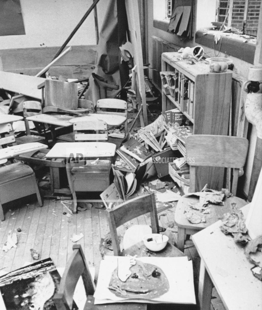 A 3:30 AM bombing caused $1,500 in damage to a room at the Midway Elementary School southeast of Charleston, West Virginia, a continuation of the violent protests over textbooks in Kanawha County. There were no injuries. The bombing occurred less than a day after a Presidential aide announced that the White House was seeking a “constructive compromise” to end the violence, which has included several shootings. A stick of dynamite thrown through a window of the Midway Elementary School on Campbells Creek, southeast of Charleston, caused damage to furniture, windows, and eouipment officials said. Damage was confined to one room and the school was opened for classes today, but no pupils attended classes.