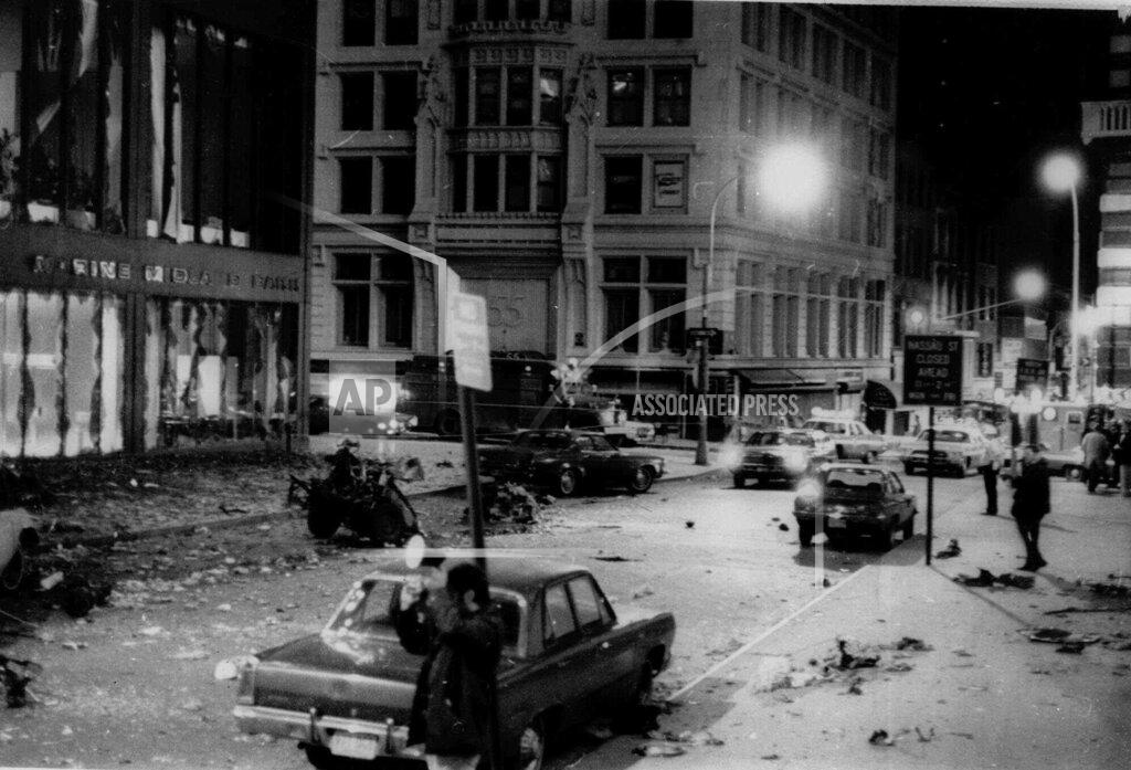 In the early morning hours between 2:55 and 3:35, Puerto Rican separatists of the Fuerzas Armadas de Liberación Nacional Puertorriqueña (FALN) terrorist group set off five bombs in Manhattan, with the largest bomb set off in New York’s Financial District. Despite the damage, there were no injuries. One bomb exploded in an auto in the financial district, two exploded in Rockefeller Center and two exploded on Park Avenue north of the Waldorf-Astoria Hotel. The downtown blast, which occurred in an automobile, blew a two‐foot‐wide hole two feet deep in the street between the Marine Midland Bank and the Chase Manhattan Plaza headquarters of the Chase Manhattan Bank. It scattered debris for a block and a halt. In one of the Rockefeller Center blasts, windows 31 stories high were broken by shock waves.