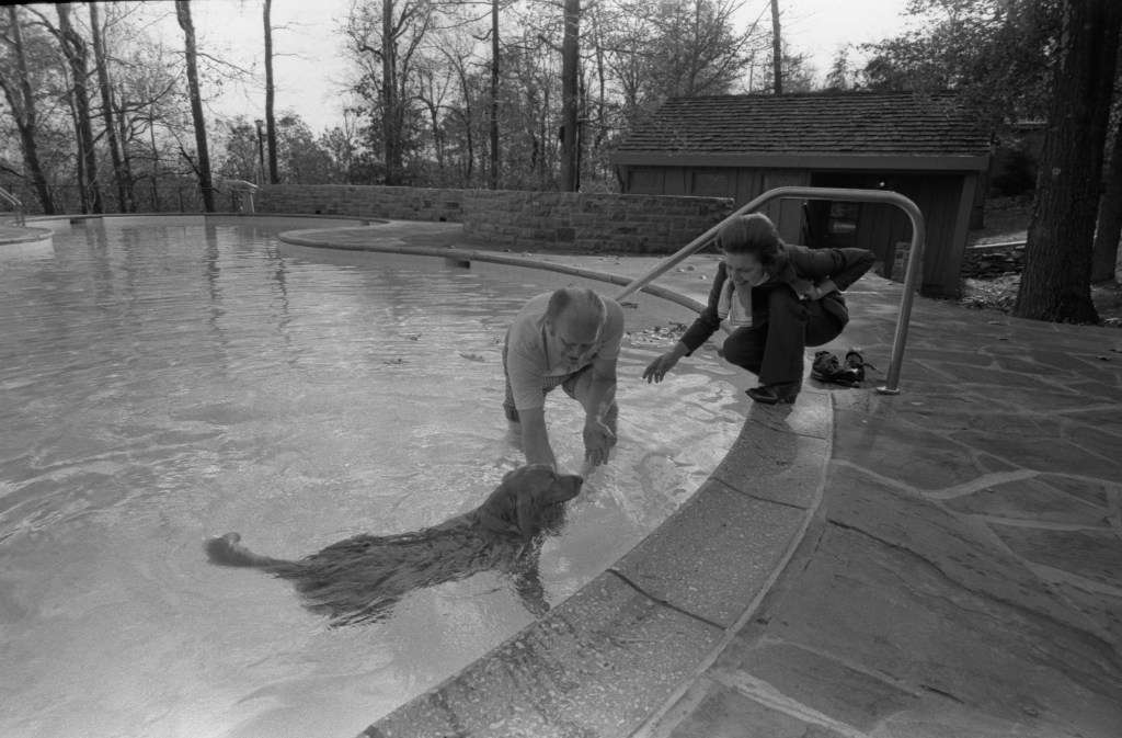 President Ford spent a relaxing fall weekend at his Camp David, Maryland, mountaintop retreat. He went for a swim, this morning in the heated pool, and walked amid the fall foliage of the surrounding woods. Mrs. Ford came along for her first outing since undergoing breast cancer surgery September 28. White House spokesmen said she took the new family dog out for a walk.