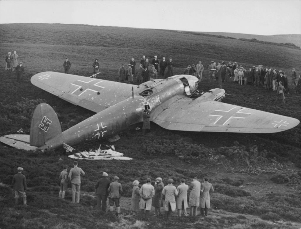 A German He 111 bomber was shot down by RAF fighters east of Dalkeith in southeastern Scotland — it is the first German airplane shot down over land in the British Isles during World War II. Two of the 4-man crew survived. Germany launches an air attack on Great Britain. The Luftwaffe raid is against Royal Navy ships anchored in the Firth of Forth. A Heinkel He 111 from Luftflotte 2 (northern Germany) is shot down near the Firth of Forth after a dramatic chase by the RAF in which the Luftwaffe plane landed and took off, was brought down and again tried to take off. The Heinkel finally winds up on the Lammermoor Hills near Humbie where it cannot taxi and try to take off any more. The two surviving crew are taken to Edinburgh. It becomes known as the “Humbie Heinkel” and is known as the first Luftwaffe aircraft brought down on British soil (there had been some shoot-downs during the First World War).