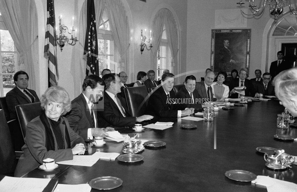 President Reagan receives a brief report from the Task Force on Legal Equity for Women.
