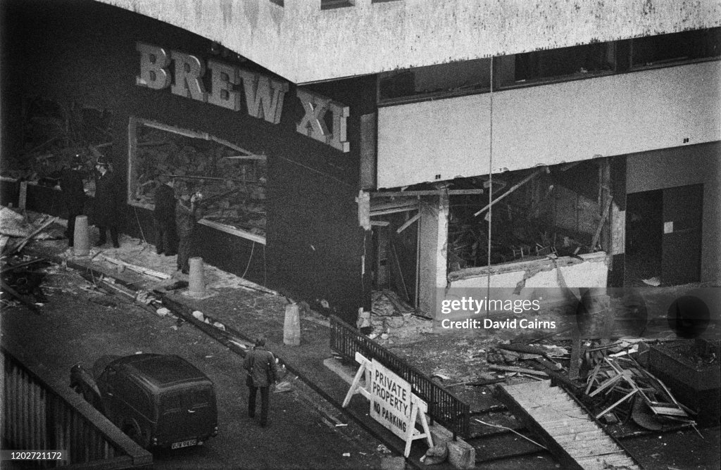In Birmingham, England, two pubs on New Street were bombed, killing 21 people and injuring 182 others, many of them seriously, in an attack widely believed at the time to be linked to the Provisional Irish Republican Army. At 8:17 in the evening, a time bomb exploded at the Mulberry Bush pub, killing 10 people, two of whom had been walking past the establishment. Ten minutes later, at 8:27, another bomb detonated at the Tavern in the Town and killed 11 others. The bombings were the deadliest terrorist acts in the Britain in the 20th century.