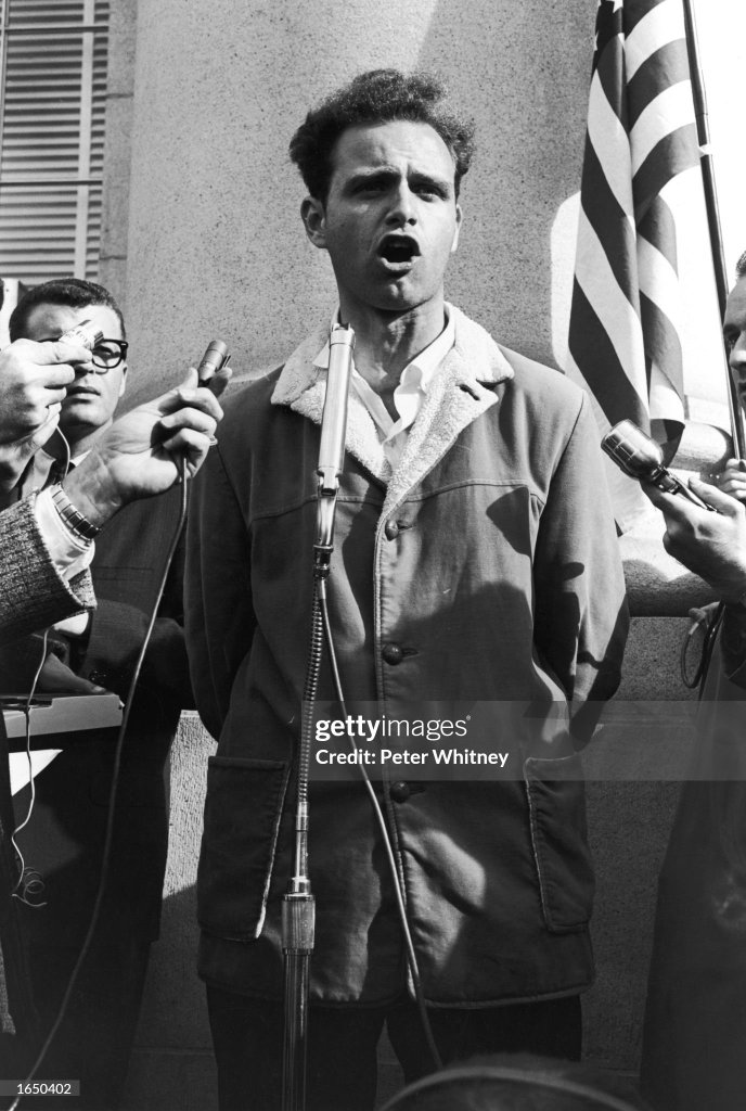 Mario Savio addressed a crowd of 5,000 students at the University of California in Berkeley, delivering what would be a famous speech now known as the “Bodies Upon the Gears” speech, guiding them to occupy the university’s administration building, Sproul Hall. More than 1,000 walked into the building to begin a sit-in; UC officials estimated that 814 of the occupiers were arrested and “that most of those who sat in and were jailed were students” “There is a time,” Savio said, “when the operation of the machine becomes so odious, makes you so sick at heart that you can’t take part; and you’ve got to put your bodies upon the gears and upon the wheels, upon all the apparatus, and you’ve got to make it stop. And you’ve got to indicate to the people who own it, that unless you’re free, the machine will be prevented from working at all.” The Free Speech Movement would expand from Berkeley to other university and college campuses in America and beyond.