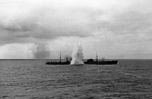 German liner Watussi is scuttled by her crew after she is spotted by a Junkers-86 of 15 Squadron of the South African Air Force which directs the cruiser HMS Sussex to intercept. Sussex rescued the 196 people on board. Watussi was shelled by HMS Renown to quicken her sinking. Watussi had been acting as a supply ship for German surface raiders.